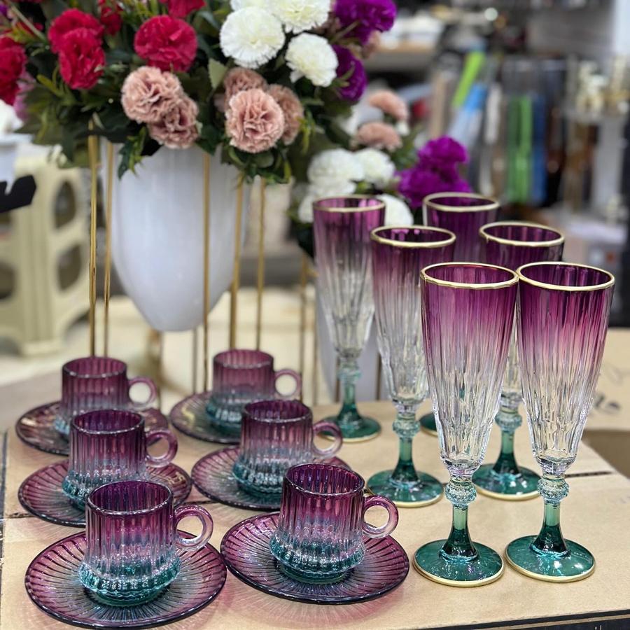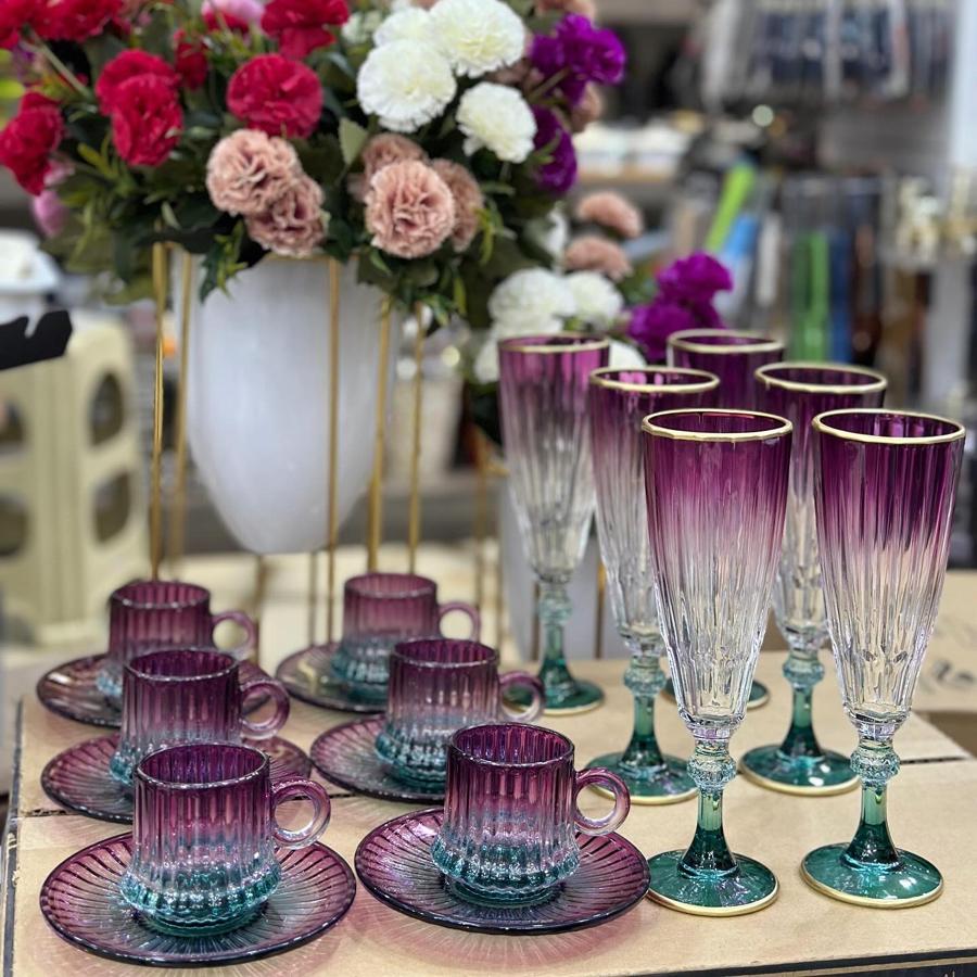 18 parça set çift renk özel seri, 6 adet flüt boyu kahve yanı su bardağı ve 6 adet fincan ve 6 adet fincan tabağı ile birlikte gelir