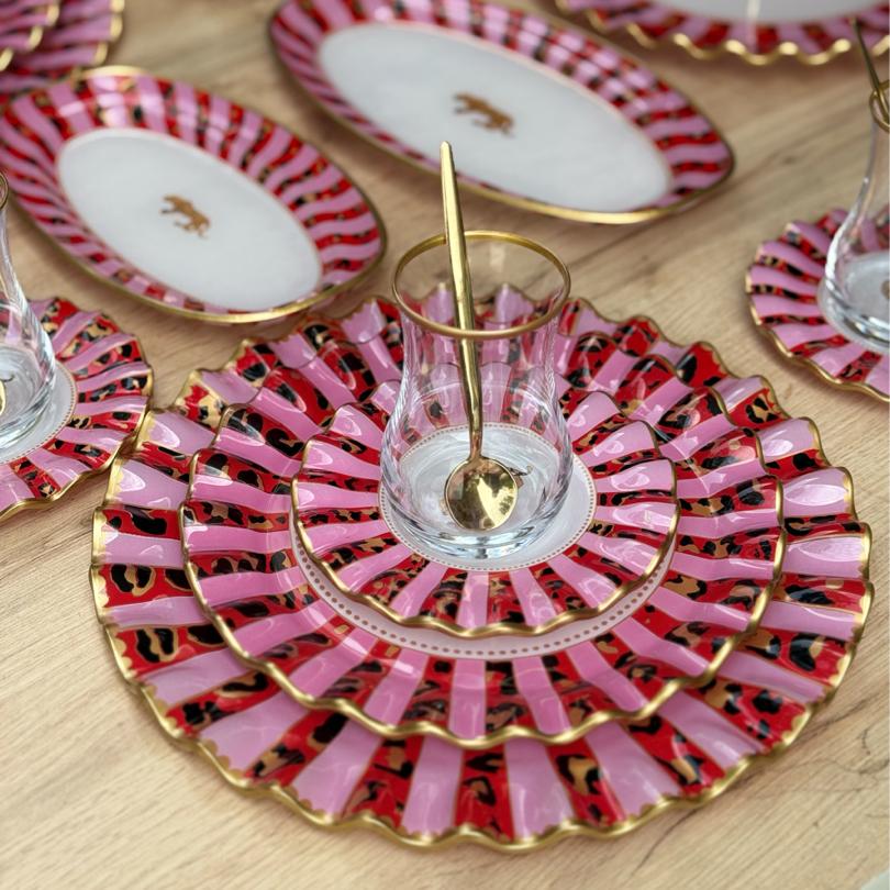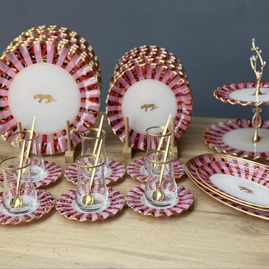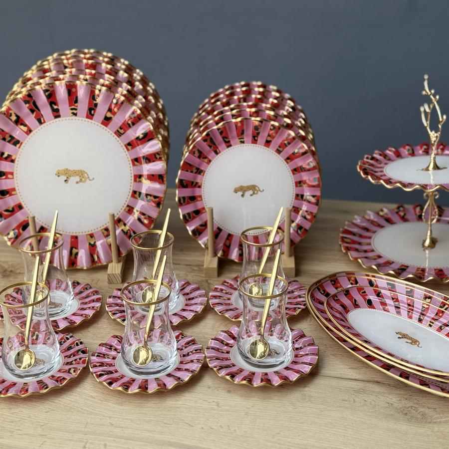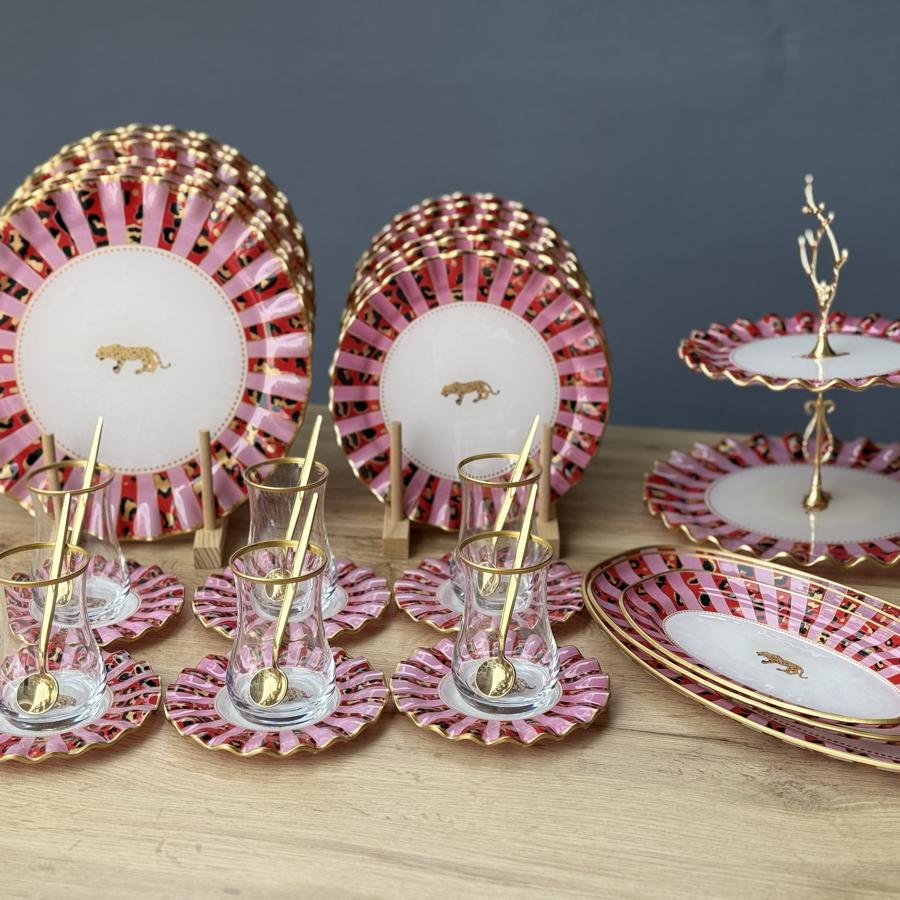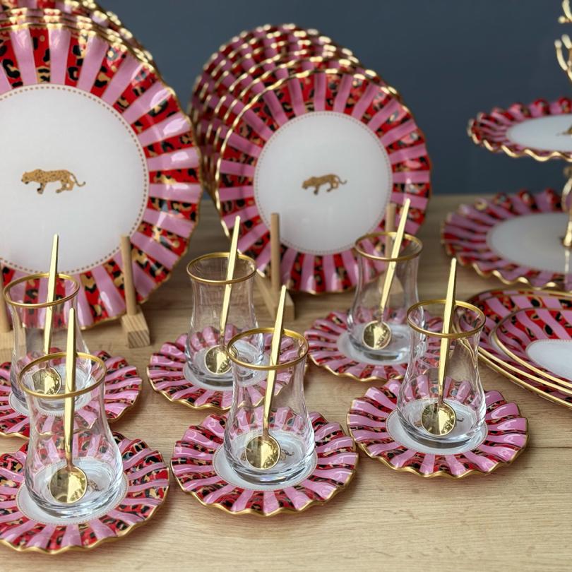 34 parça Kırmızı Leopar Kahvaltı&Çay Seti