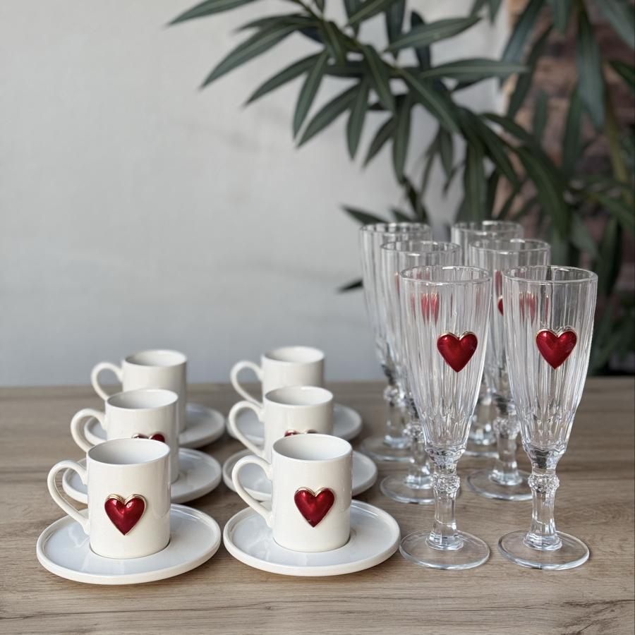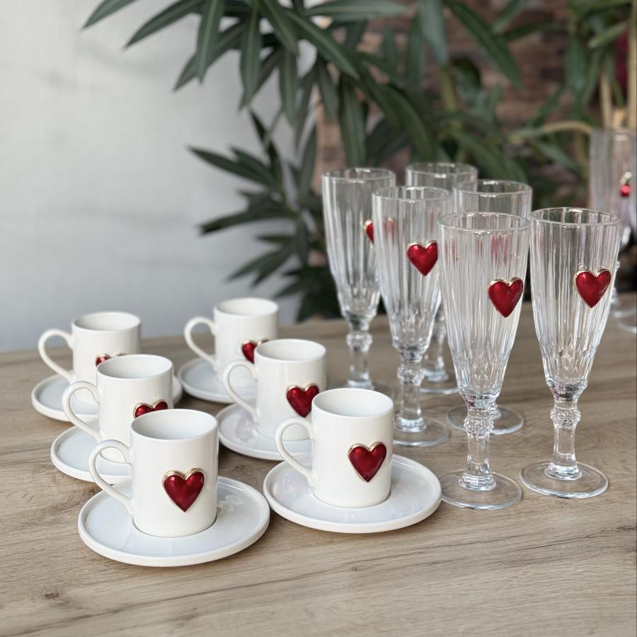 6 Kişilik 18 parça Lüks Love Kahve Seti