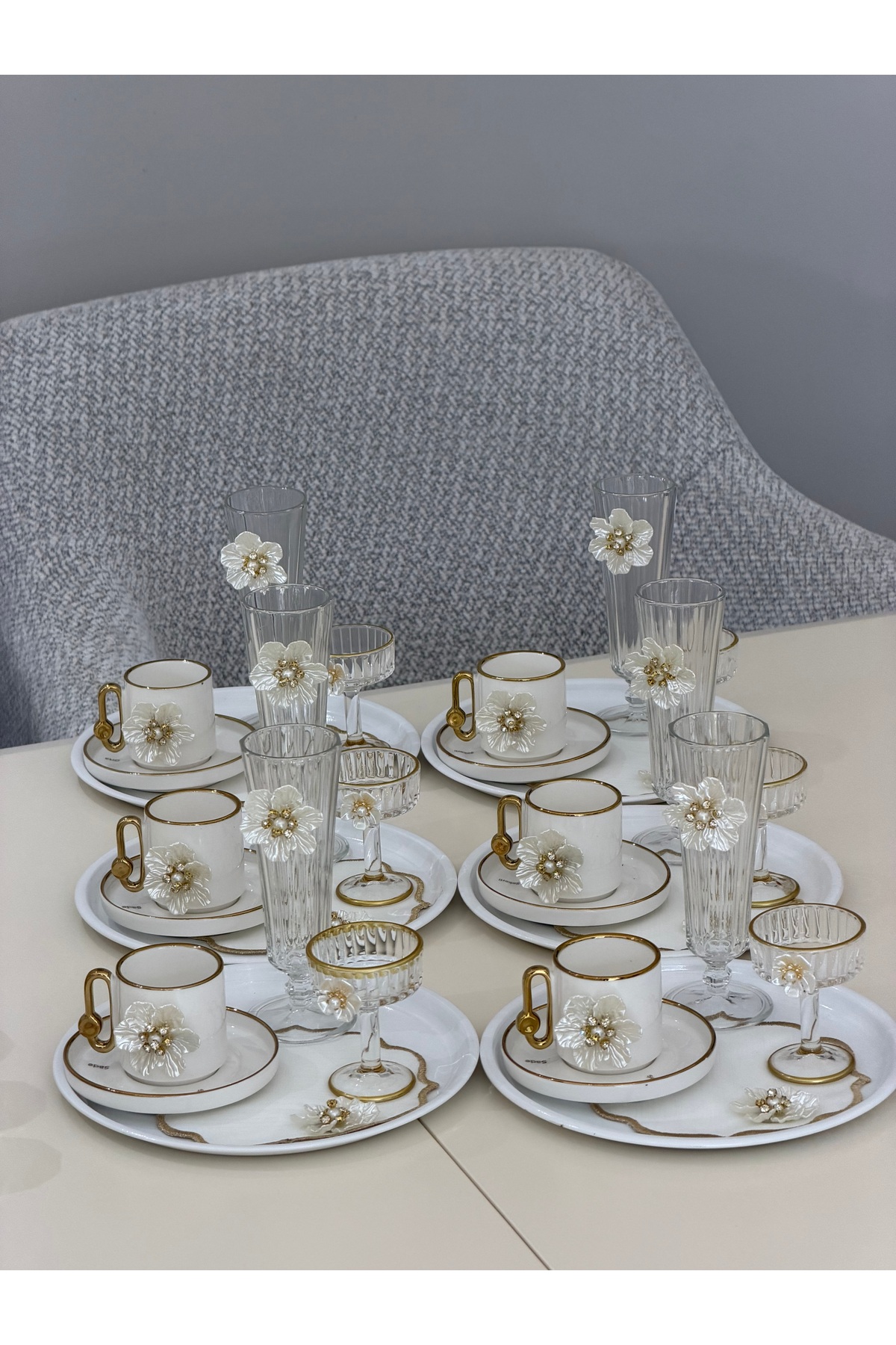 Özellikle özel günlerde, misafirlerinizi ağırlarken bu lüks sunum seti ile onlara gösterdiğiniz özenin bir simgesi olacaktır. Düğünler, özel toplantılar veya hoş geldin partileri gibi etkinlikler için mükemmel bir tercih.