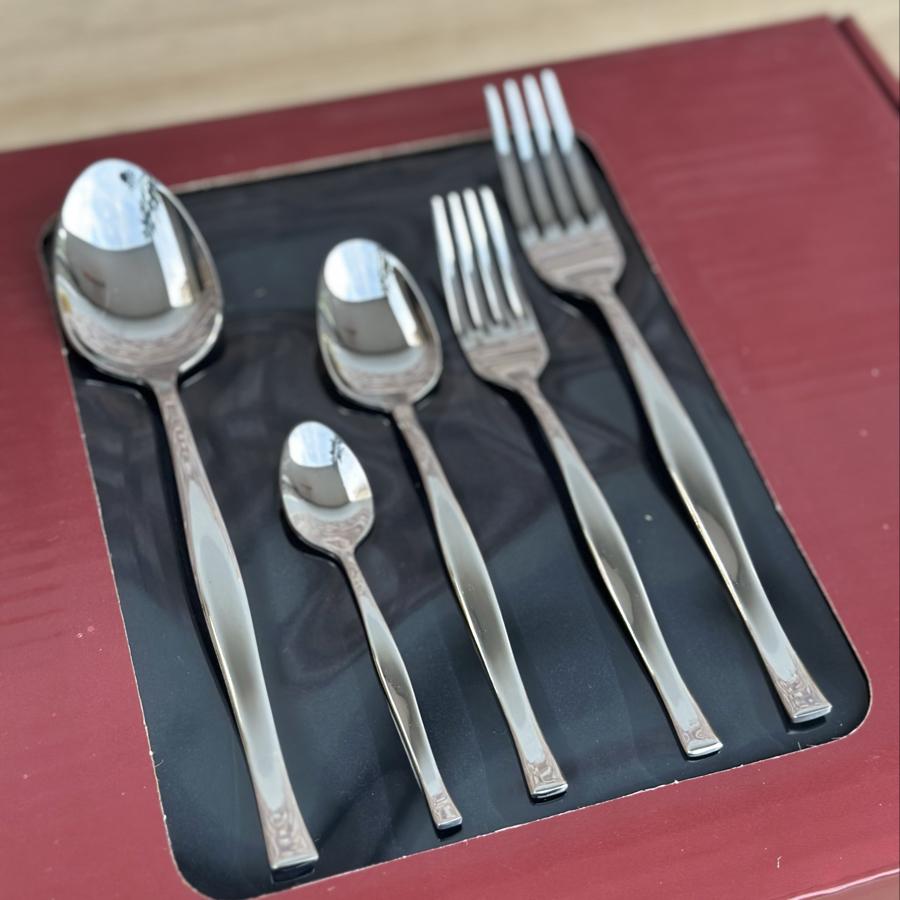60 parça 12 kişilik set Set içeriği; 12 adet yemek kaşık, 12 adet yemek çatal, 12 adet tatlı kaşık, 12 adet tatlı Çatal, 12 adet çay kaşık…