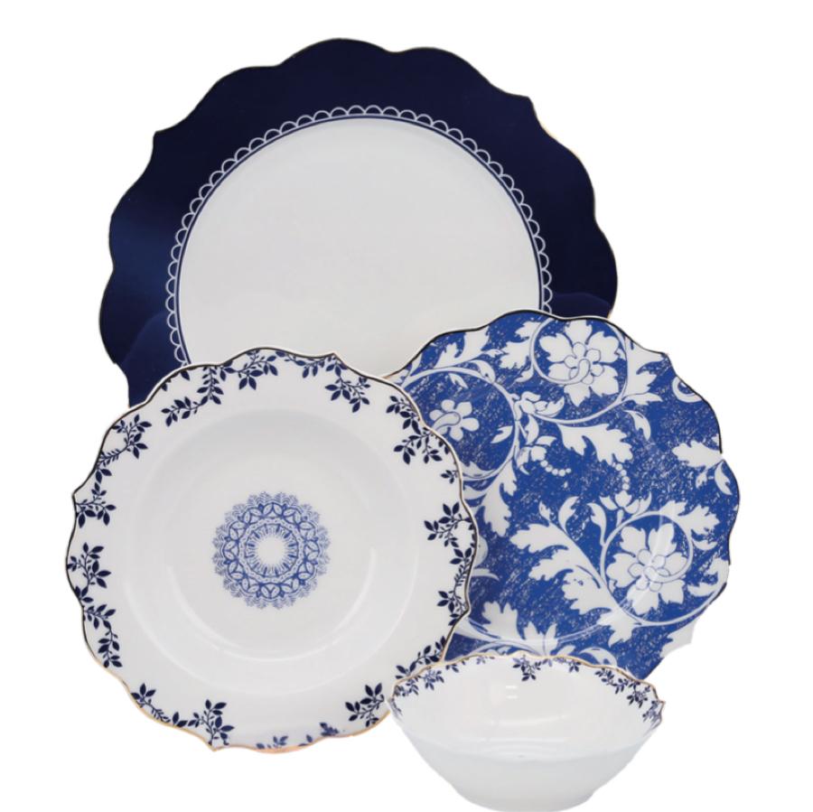 Pink More Modern Blue 24 parça 6 Kişilik Lüks Yemek Takımı