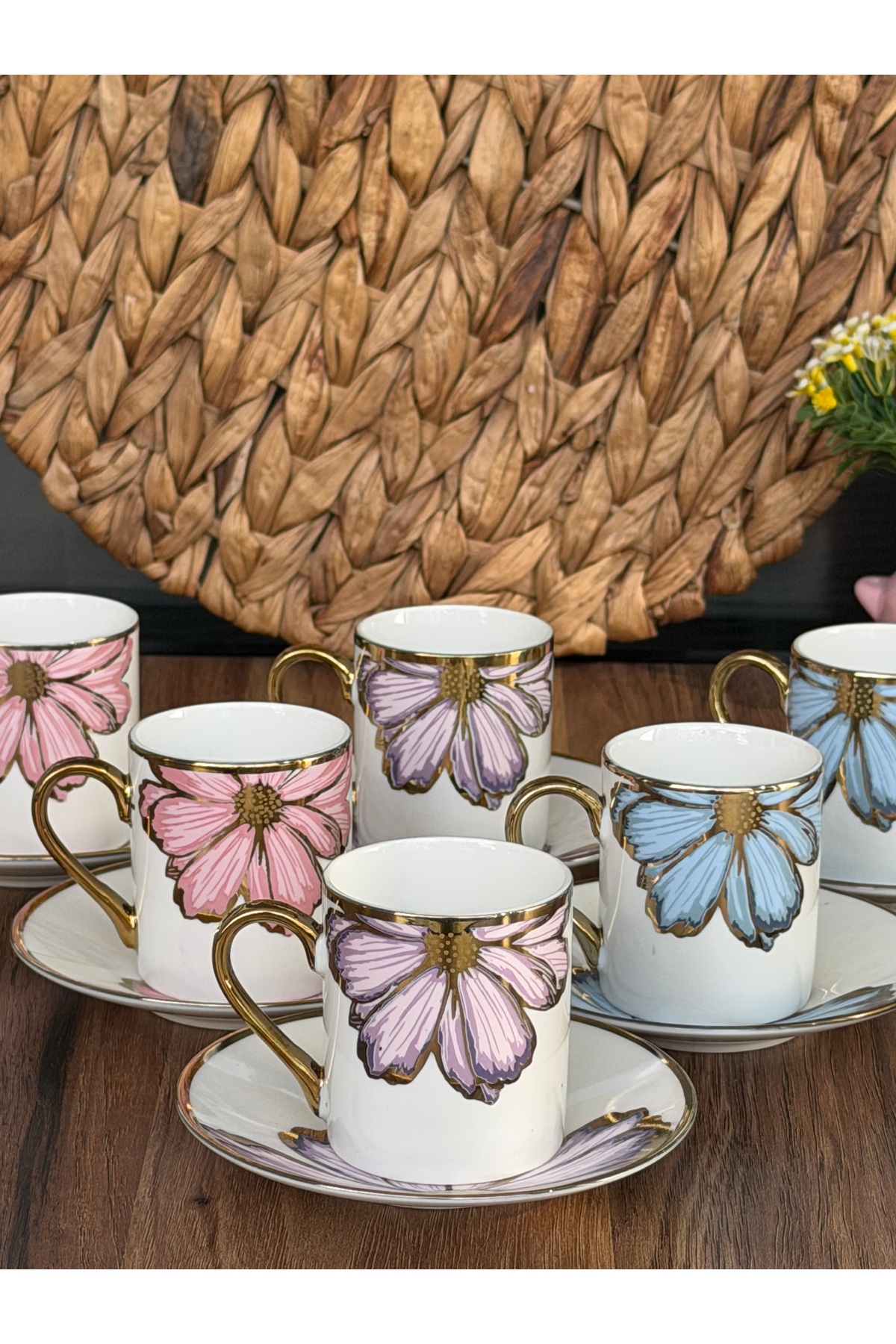 Rengarenk Porselen Papatya Kahve Fincanı